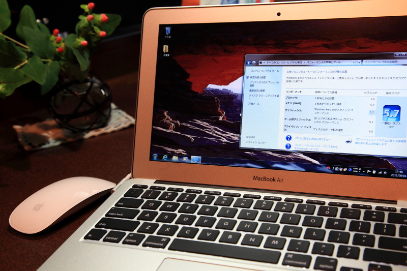 関連するギャラリーにWindowsの性能値を載せている。PONから20秒でgoogle検索できる。非常に早い。無線LANもMagic Mouseもすんなり接続された。これで撮影先でのバックアップもばっちりだ。