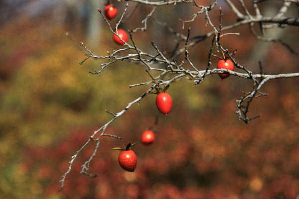 左の親指ほどの柿は、常寂光寺の本堂の前に実っていた中国原産の老爺柿です。