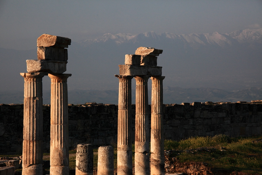 丘の上にはローマ帝国の温泉保養地がヒエラポリス遺跡として残っている。円形劇場、アポロ神殿、浴場などローマ人好みの建物跡が残っている。
