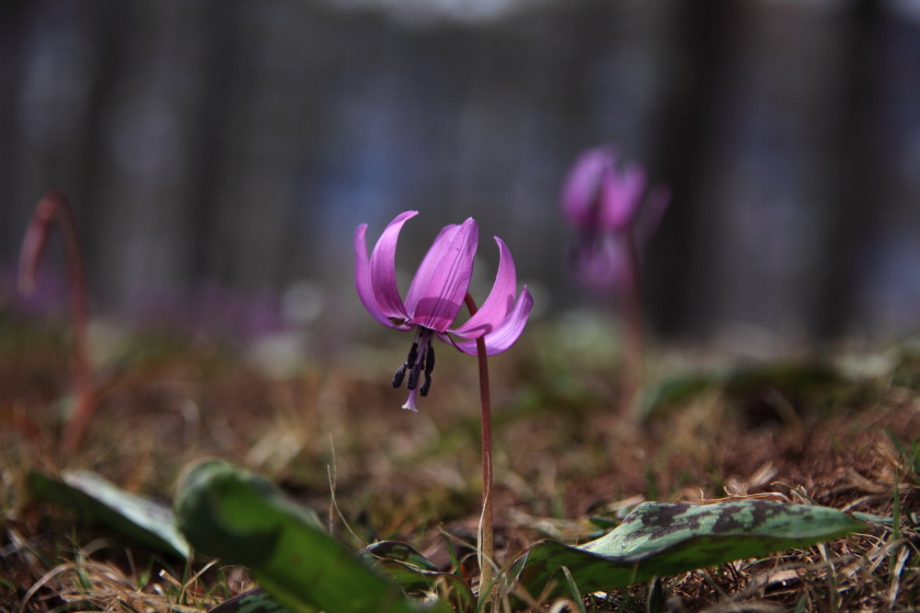 戸隠高原のミズバショウとカタクリ