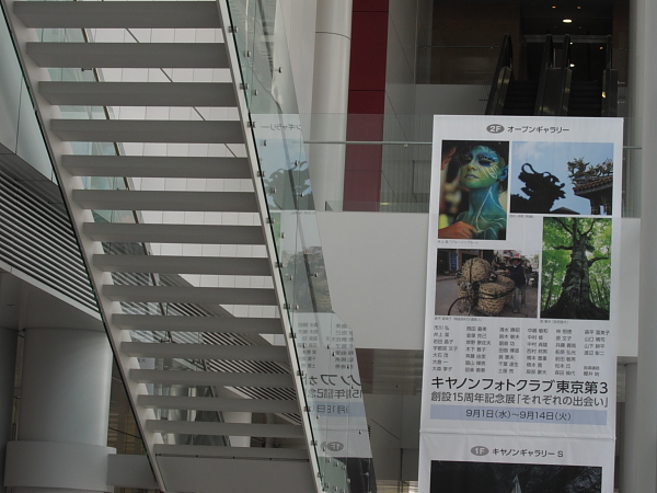 品川にあるキャノンギャラリーでフォトクラブの写真展(9/1~9/14)を開催している。今年は自分の写真がポスターに採用されている。会場に大きな垂れ幕が飾って合ったので撮ったのが左の一枚。レベルの高い展示が多く、キャノンの話では前回は3千人を超える来場者があったとのこと。w(*゚o゚*)w