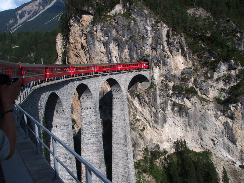 氷河特急にてクールからサンモリッツへ移動。ディアボレッツァ展望台にてベルニナ・アルプスと氷河を楽しむ。