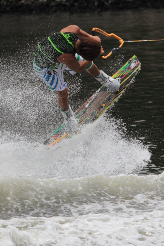 東雲運河で競技が行われ、(ルールはよくわかっていないが)400mくらいを往復して5回程度パフォーマンスを行う。荒業でのジャンプの着水は難しくなかなか成功しない。パーフェクトは2割程度だ。2回沈没すると競技は終了しボートに乗せられ帰る。8月にお台場海浜公園でワールドカップが行われるらしい、また見に行こう。