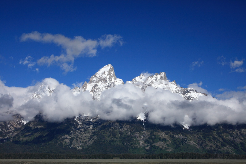 撮影後半は、イエローストーンの南に位置する「最も美しい国立公園」と呼ばれるグランドティートン国立公園を訪れた。グランドティートンは、4000m級のティートン連山が高い空に向ってそびえ立ち、そのふもとを美しく澄んだ7つの湖が点在している。広大な平原に忽然(こつぜん)と山脈が立ち上がる光景は独特なものだ!!